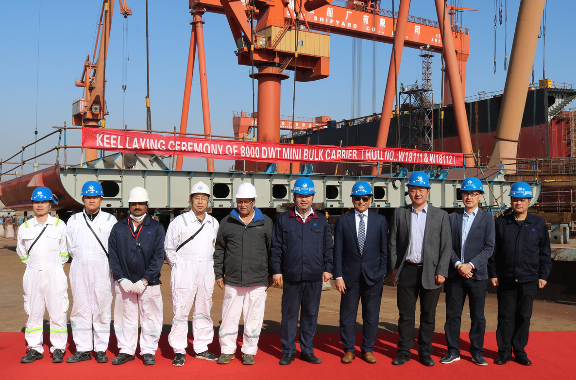 11月20日,由蕪湖造船廠為印度JSW集團(tuán)建造的8000噸散貨船訂單,完成#1#、#2船上船臺(tái)搭載和9#、10#船開(kāi)工節(jié)點(diǎn),至此,該系列訂單10艘船,全部實(shí)現(xiàn)同步批量建造。